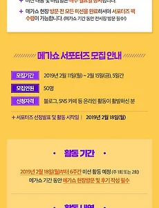 반응형 대외활동모집2 [서포터즈 모집 공유] 오설록 : WHO TEA MANIA 2기모집 오설록 : WHO TEA MANIA 2기모집 ◆ 모집일정 : 2019년 2월 14일 (목) ~ 2019년 2월 20일 (수 ) * 최종 합격자는 개별 연락 ◆ 활동기간: 3월 ~ 11월 (9개월) ◆ 활동내용 : 매 월 2회 미션수행 -블로그 인스타그램, 유튜브 중 하나의 채널에 업로드(지정) - 9월 ~11월 오설록 닷컴 페이지 추가 업로드 -자발적인 추가 미션 수행은 가산점 부여 - 우수활동자 총 3회 선발 (5월/ 8월 /11월) ◆ 활동혜택 월간혜택 : 오설록 제품 제공/ 소정의 활동비 제공 우수활동자 (분기) 혜택 / 우수 서포터즈 경품 증정 오설록 : http://www.osulloc.com/kr/ko/life/event/view/5301 2019. 2. 18. 공유) 2019 세텍메가쇼 서포터즈 모집 [ 2019세텍 메가쇼 서포터즈 모집 ] 모집기간 : 2019년 2월 11일 (월) ~ 2019년 2월 15일 (금) , 5일간 모집인원 : 50명 신청자격 : 블로그 ,sns 카페 등 온라인 활동이 활발하신 분 서포터즈 선정발표 및 활동 시작일: 2019년 2월 18일 (월) 서포터즈 모집 지원 사이트 : https://cafe.naver.com/megashowstar/55231 2019. 2. 12. 이전 1 다음 반응형